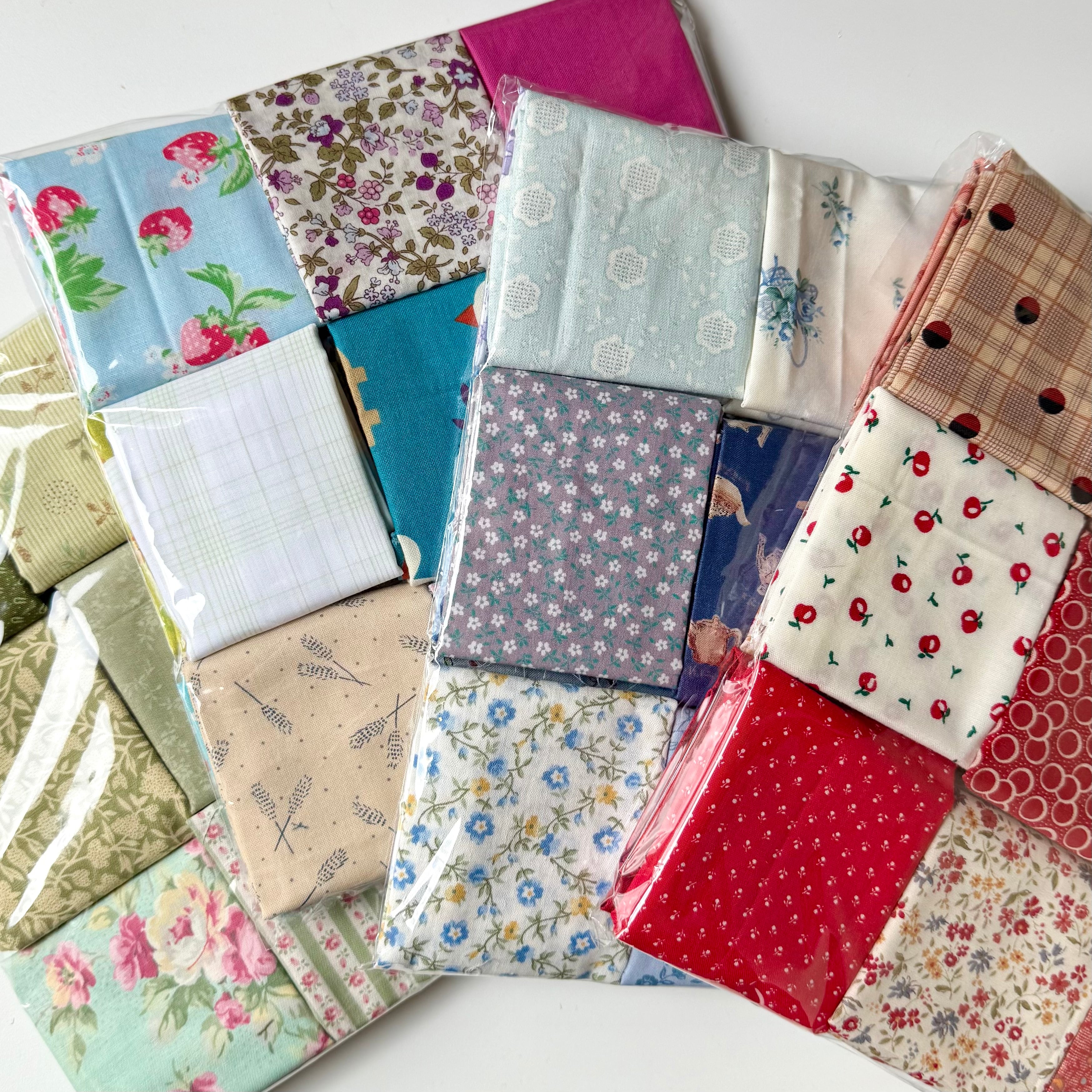 このカットクロスセットも、ビンテージ布が混じっていたり、コットンや、時にはリネンも仲間入り。